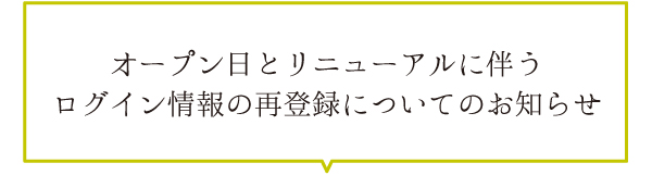 オープン日とリニューアルに伴うログイン情報の再登録についてのお知らせ