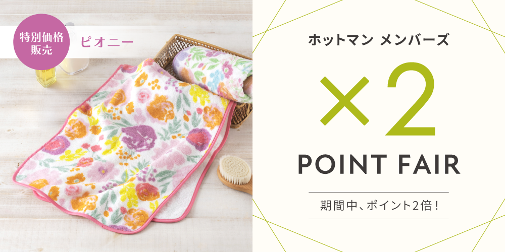 日頃のご愛顧に感謝し、上記期間中にお買い上げいただくと、ホットマンメンバーズのお買い物ポイントが2倍になる「ダブルポイントフェア」を開催いたします。(一部除外あり)