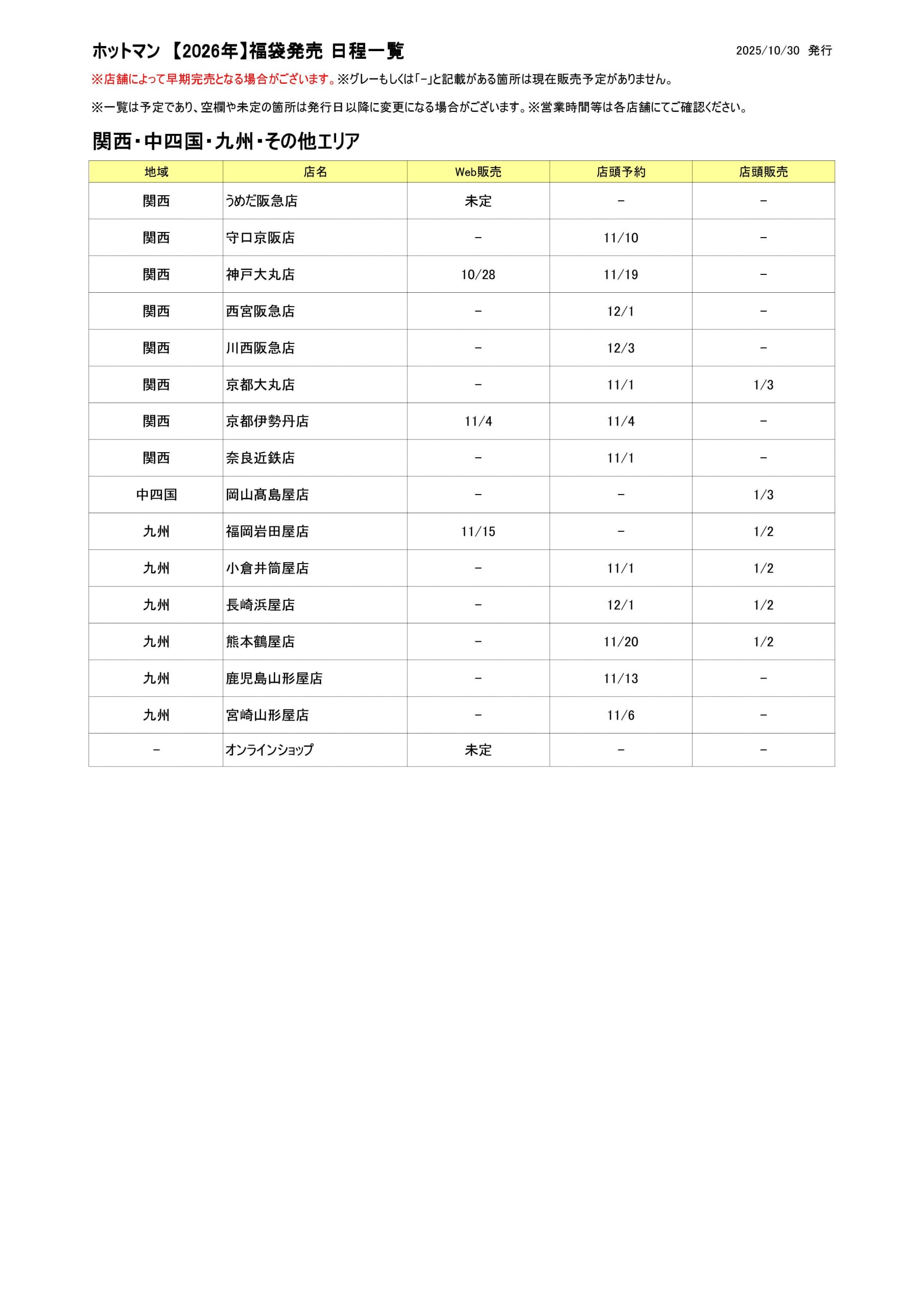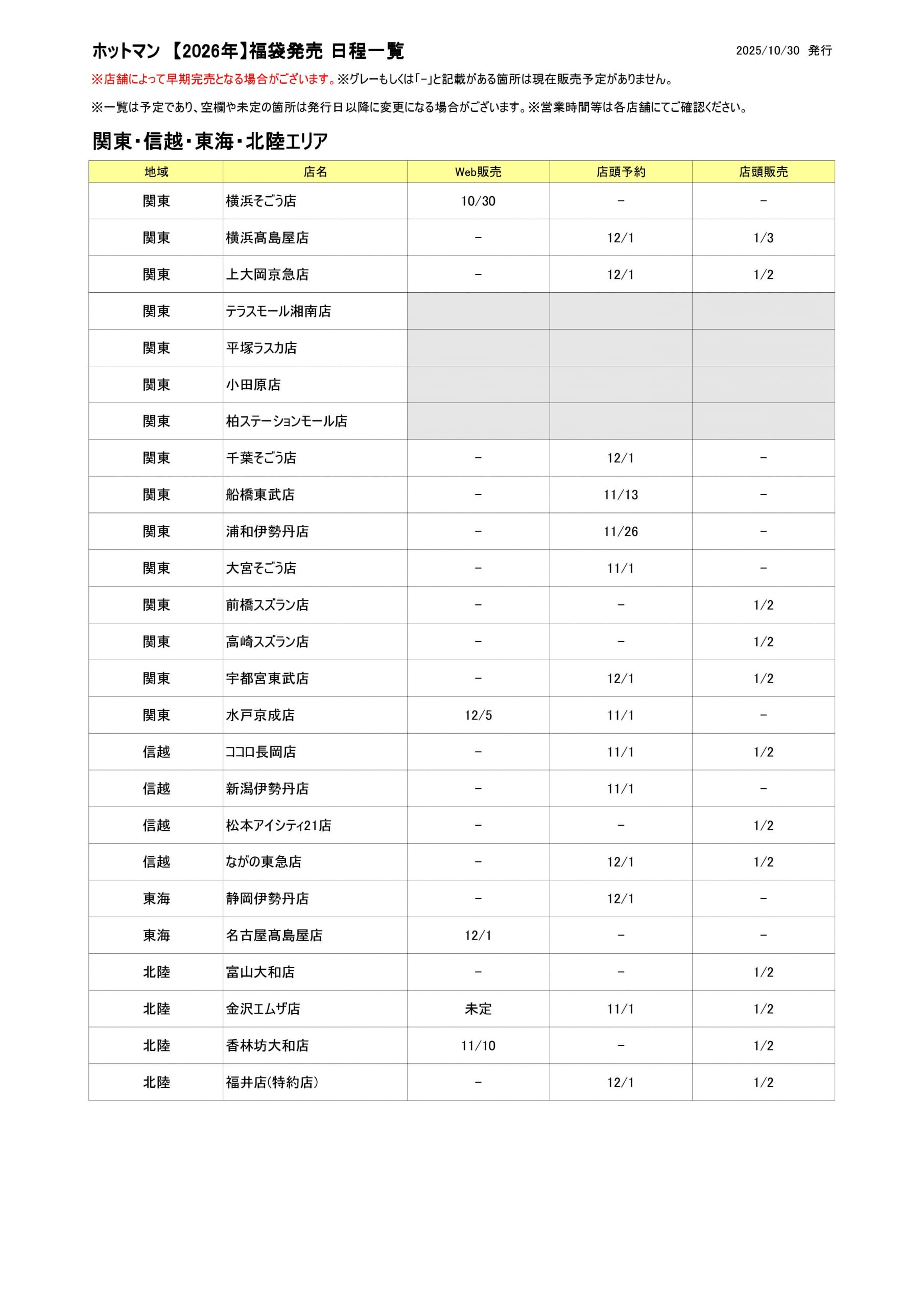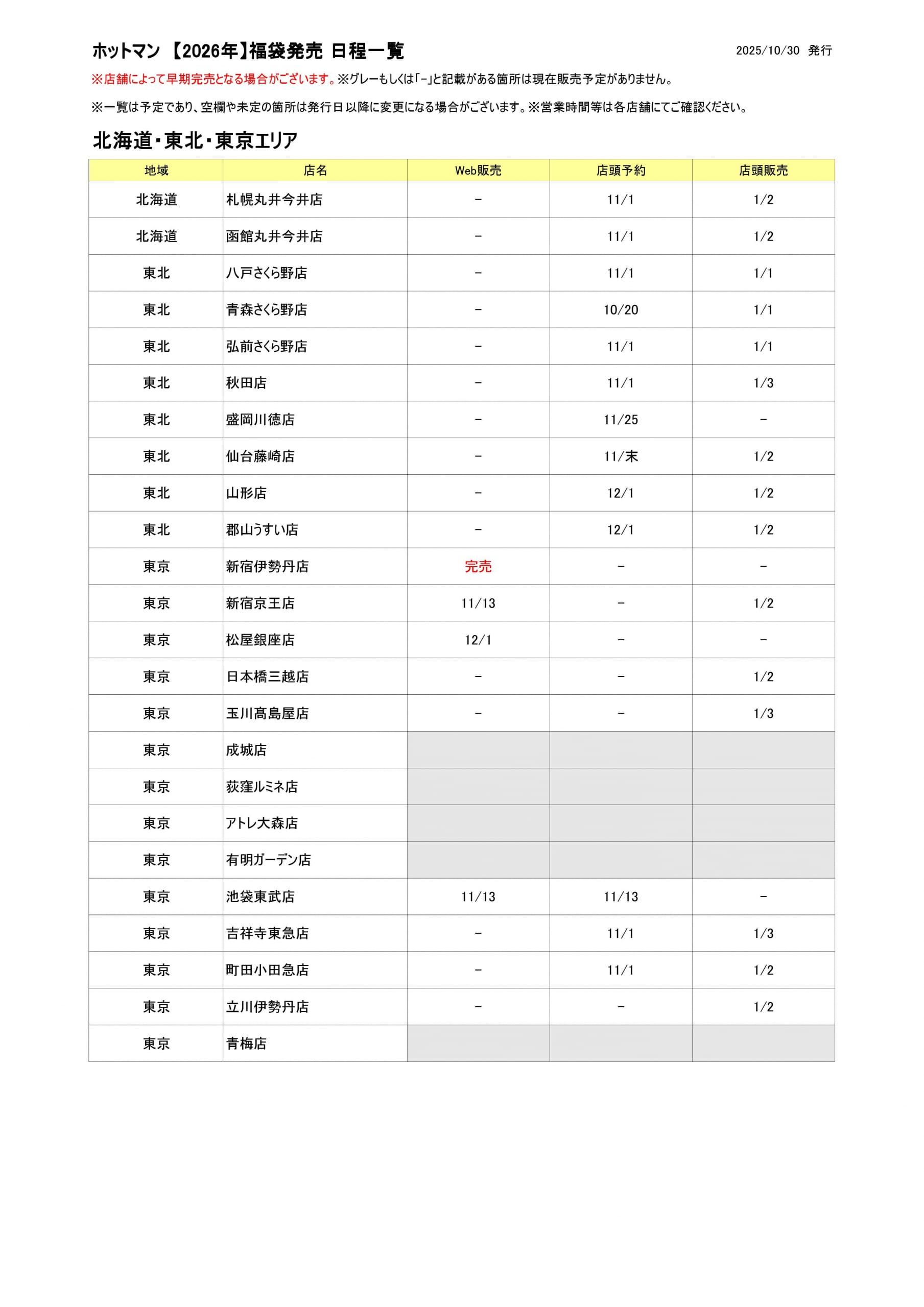 ご予約・販売日の日程について下記一覧をご確認ください。