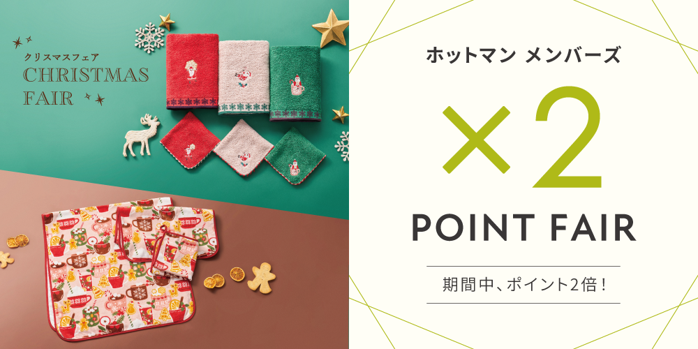 日頃のご愛顧に感謝し、上記期間中にお買い上げいただくと、ホットマンメンバーズのお買い物ポイントが2倍になる「ダブルポイントフェア」を開催いたします。(一部除外あり)