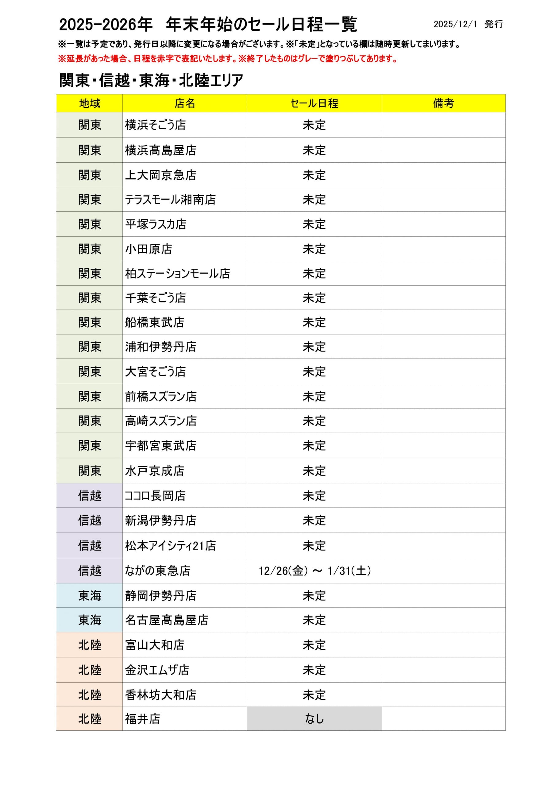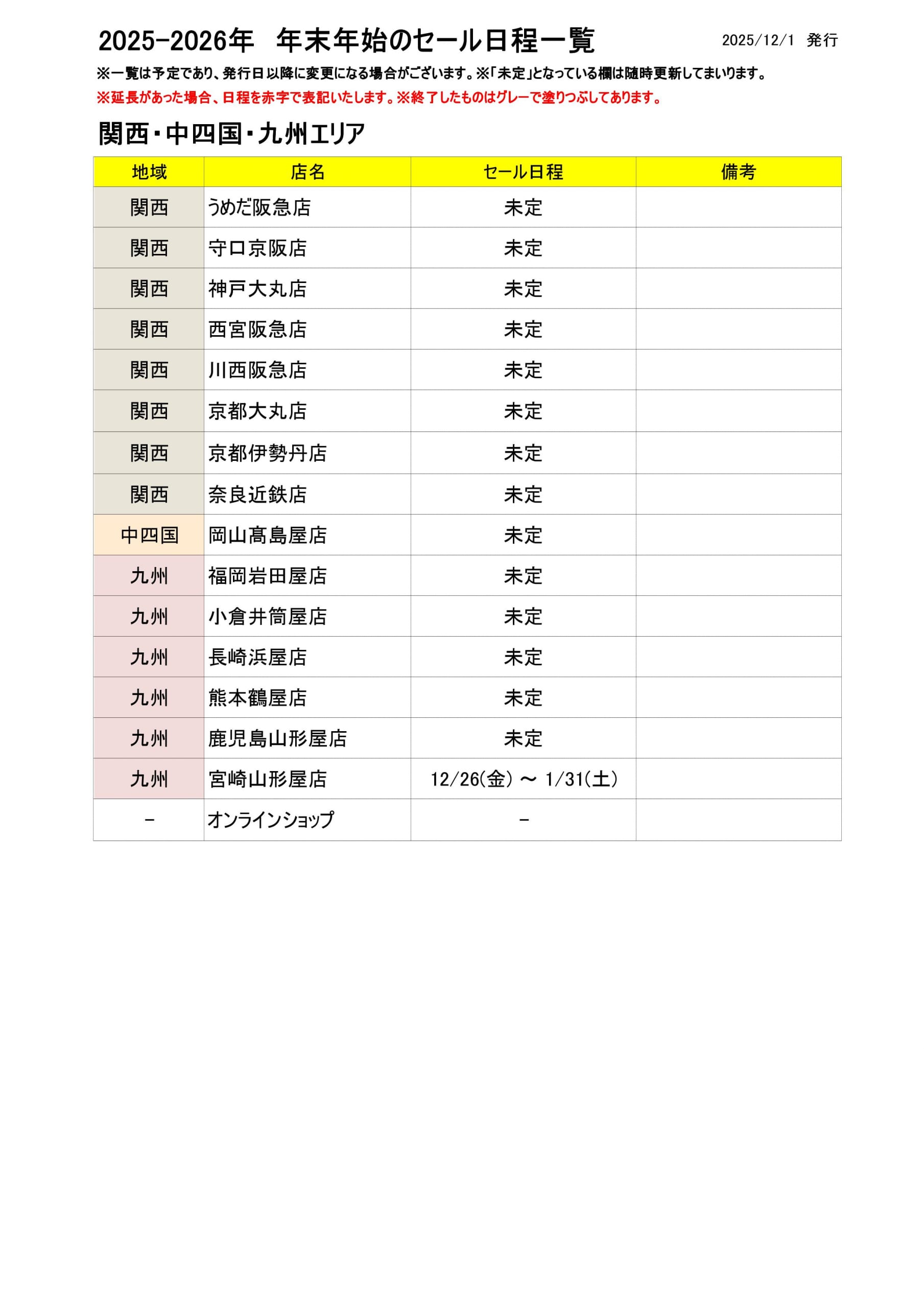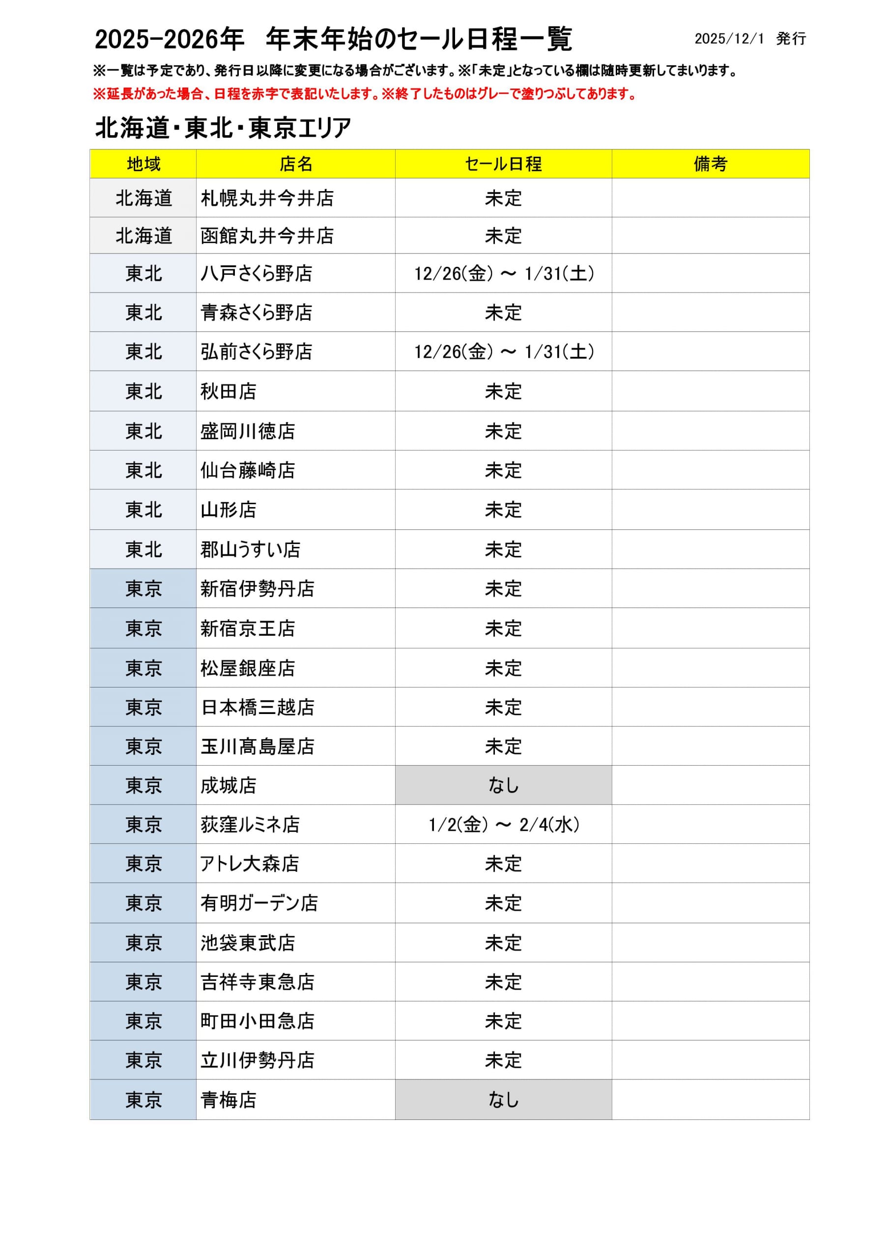 2025年-2026年年末年始のセール情報をお知らせいたします。