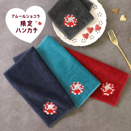 ◆ アムールショコラ限定!オリジナル刺繍入りハンカチ「ショコラマーシャ」発売