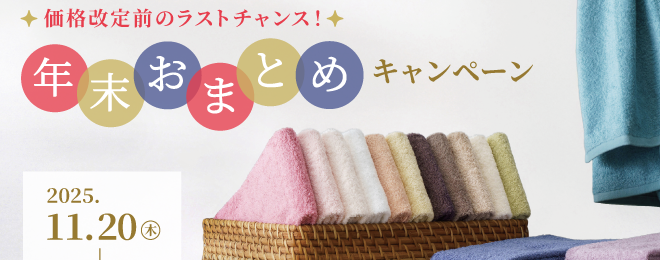 2025年11月20日(木)から12月31日(水)まで、ホットマン直営店と公式オンラインショップにて、「年末おまとめキャンペーン」を開催いたします。 瞬間吸水〈1秒タオル〉の中でも人気No.1の「ホットマンカラー」を、期間限定特別価格セットでご購入いただけます。 年末年始の贈り物や新年のご準備に、…
