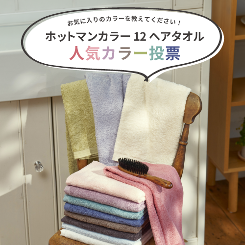 ◆ 「ホットマンカラー12」ヘアタオル 人気カラー投票開催!
