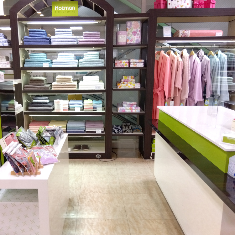 店舗では、人気の1秒タオル、ベビー商品、バスローブ、エプロンなどのタオル商品を取り扱っております。